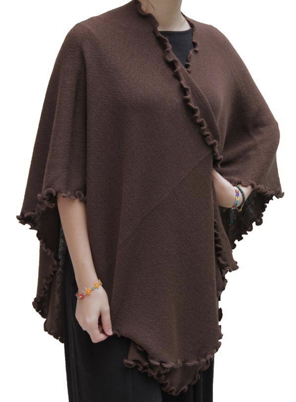 • Women’s Knitted Baby Wool Ruana Cape Wrap brown