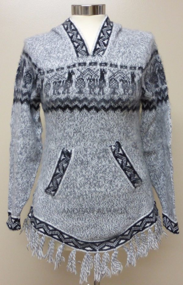 BEAUTIFUL ALPACA HOODIE TOP WITH FRINGE AND LLAMA DESIGN