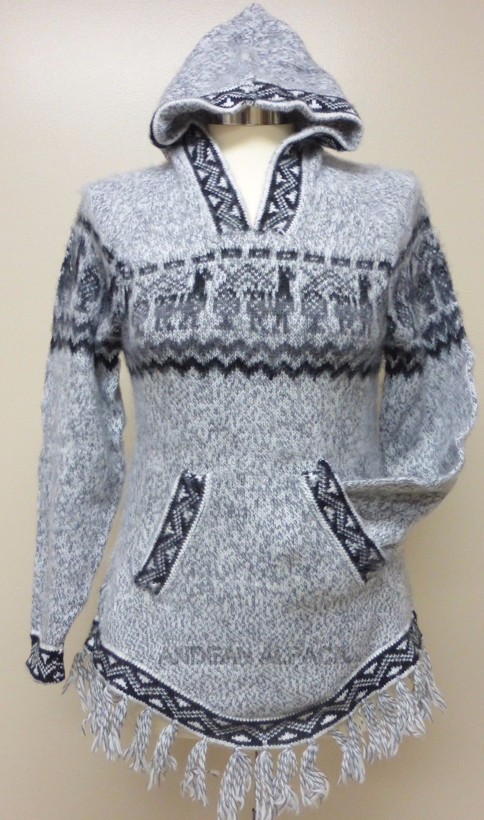 This handmade alpaca hoodie top was made in Peru, Alpaca yarn is a fine fiber, it is considered special because of its softness, luster, light weight and most of all warm.