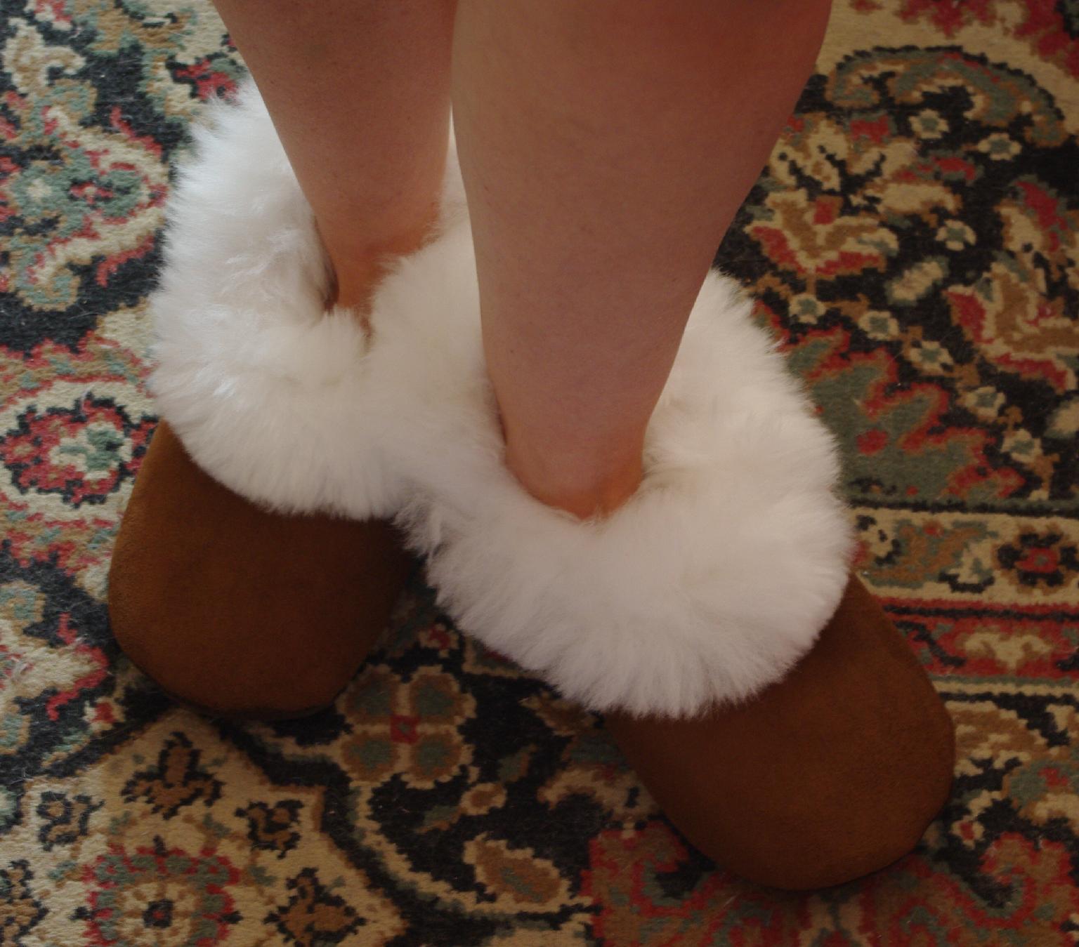 They are a perfect combination of sheep leather and alpaca. This original design is ideal for indoor, keeping feet warm and comfortable to adults.
