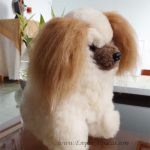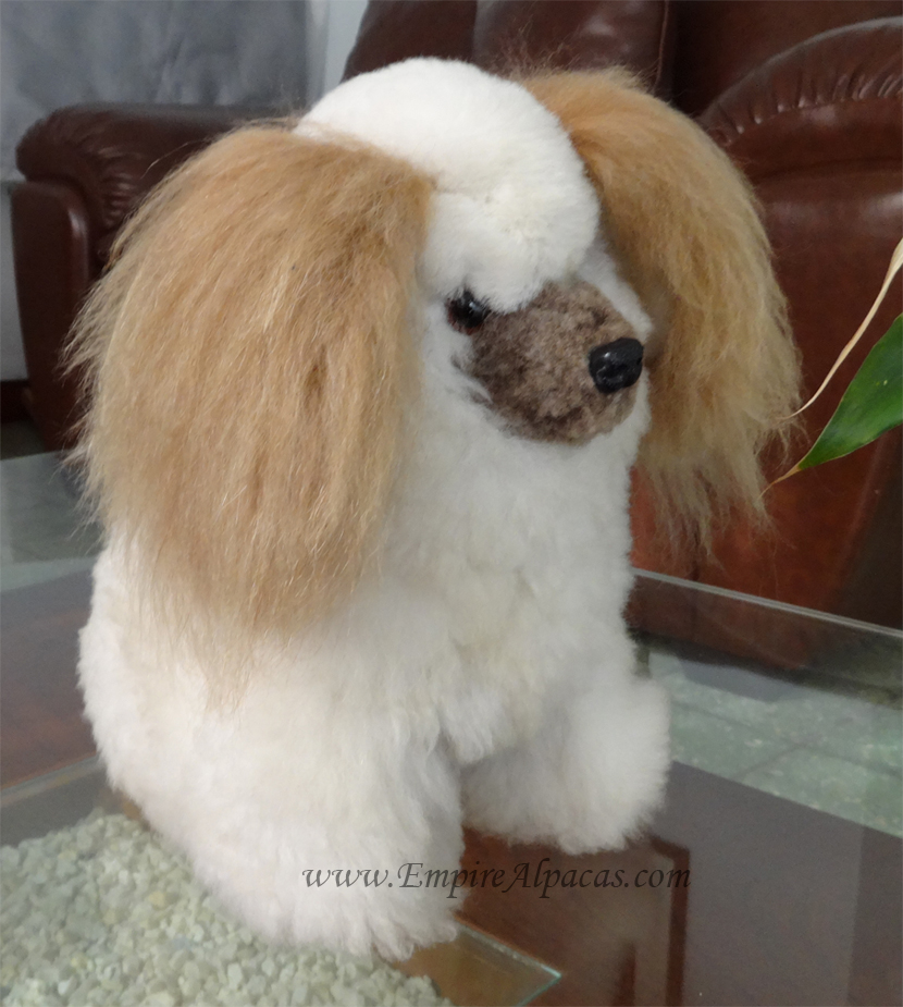 Lovely dog stuffed, made of baby alpaca, with soft texture ideal for gift and is beige long coat.