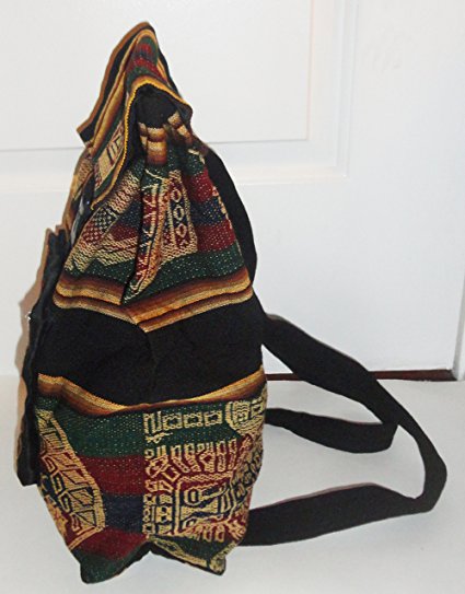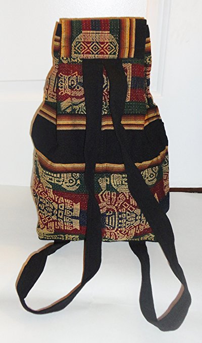 Peru Outdoors Colorful Green Peruvian Inca Motifs Wool Backpack Bag.