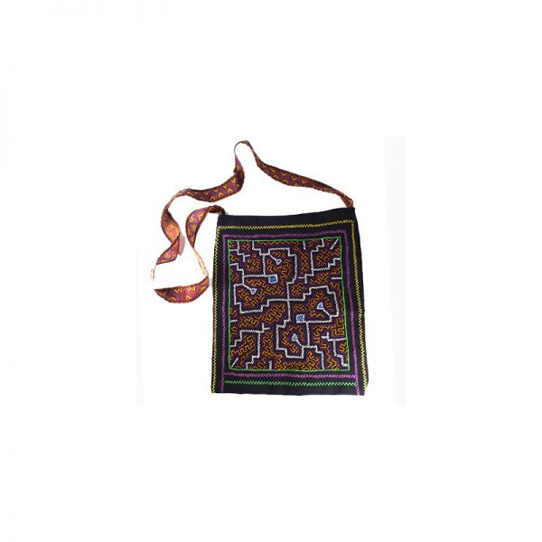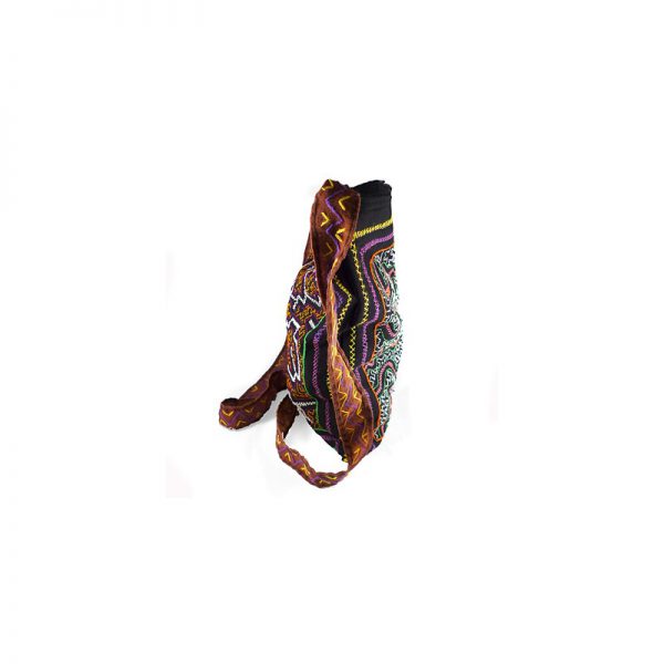 Hand embroidery bag for women Konibo ethnic Shipibo-fine cotton. The reasons schematically representing the visions induced by ayahuasca, mother of the medicines of the Amazon rainforest. Embroidered with different motifs in each of its sides. Each bag is unique.