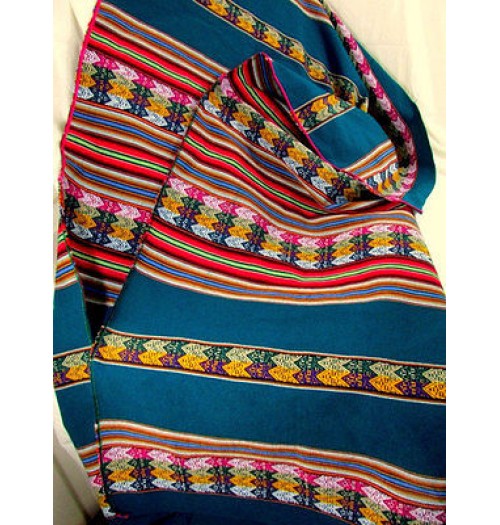 Beautiful shot of vintage wool scarf or blanket. It is a 100% Peruvian wool and raised his hand. The colors are amazing. Green is like a blue emerald green. The accents are very colorful and include almost all colors. It goes with everything.