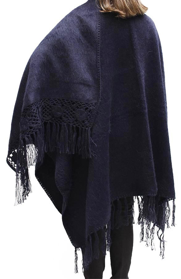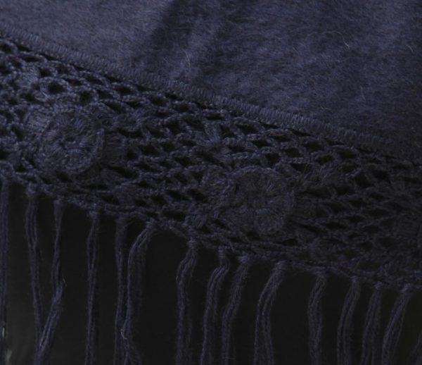 Wrap yourself in the elegant warmth of an alpaca shawl ! This luxurious alpaca shawl was handmade by expert artisans in Peru. It is very soft, warm and super stylish. It has a gorgeous crocheted fringe with a rose design, an exquisite detail. Has the same velvety texture on each side and will keep you warm and fashionable as long as you wear it.