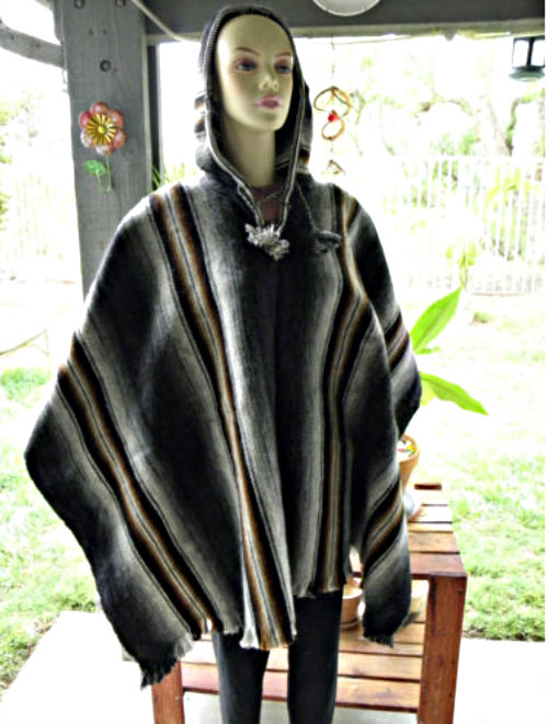 This comfortable Poncho peruvian Hooded Unisex is made from 100% Peruvian Alpaca by the local artisans from the Puno Region of the Andes Mountains in Peru. These style Ponchos are widely worn by the Peruvian