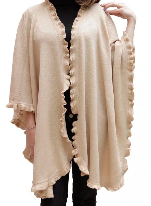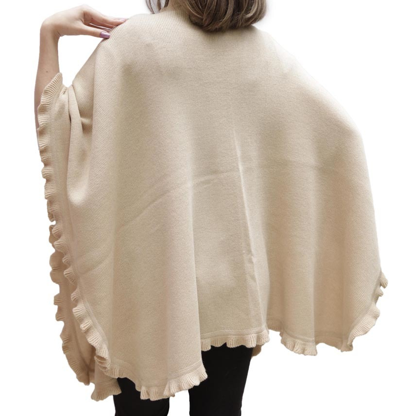 Baby Alpaca Wool Blend Ruffle Trim Ruana Poncho Cape Shawl Wrap