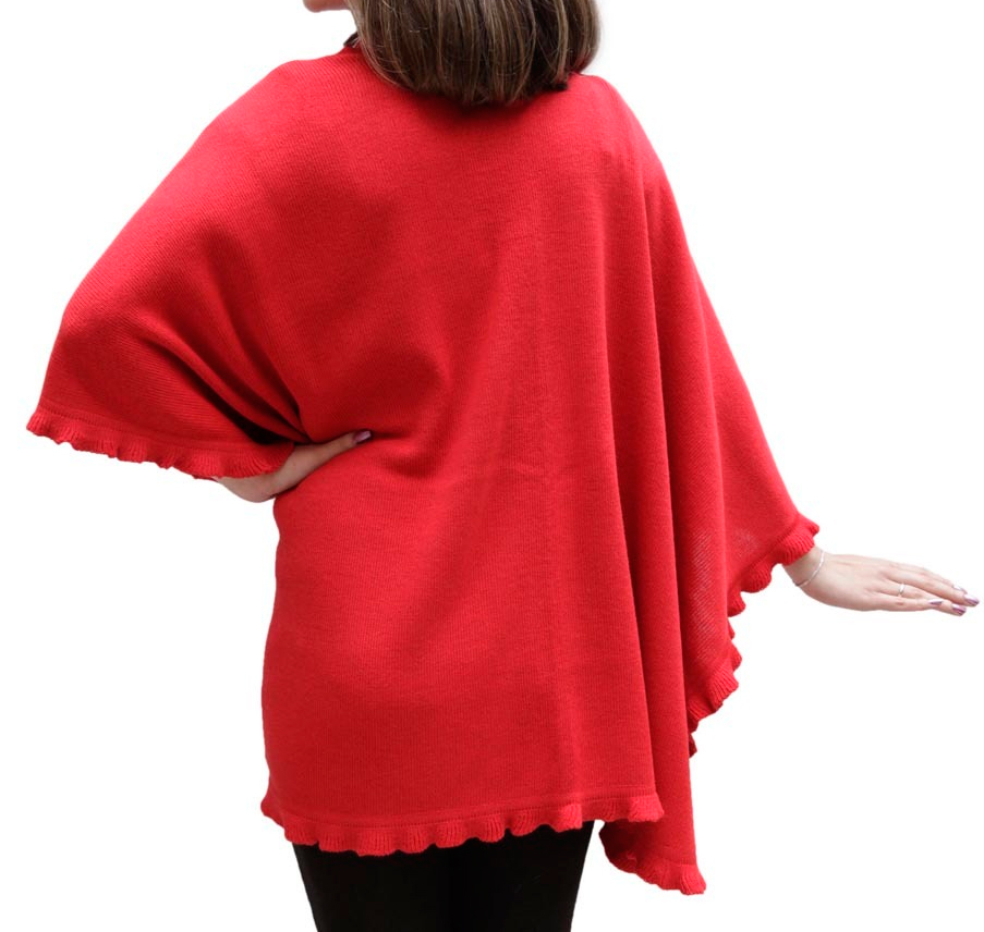 Ruana Poncho red of Baby Alpaca Shawl Wrap