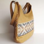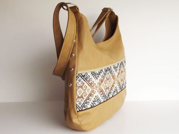 Application shoulder bag blanket over beige leatherette. inner lining black color.