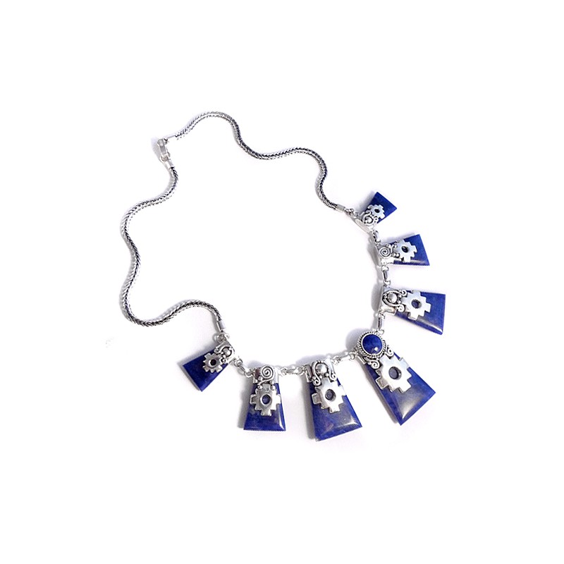 Necklace handmade with Peruvian silver. Design Chacanas or worked on sodalite Andean crosses carved premium.