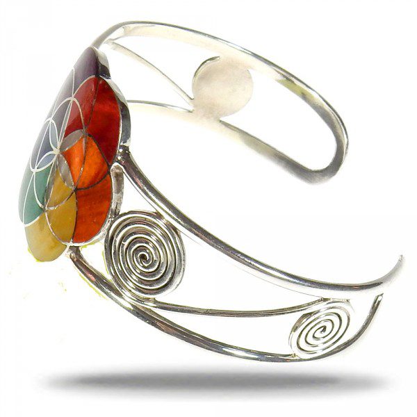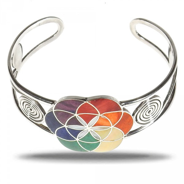 Silver Bracelet, quite Unique with Flower of Life with the chakra colours. Size adjustable.