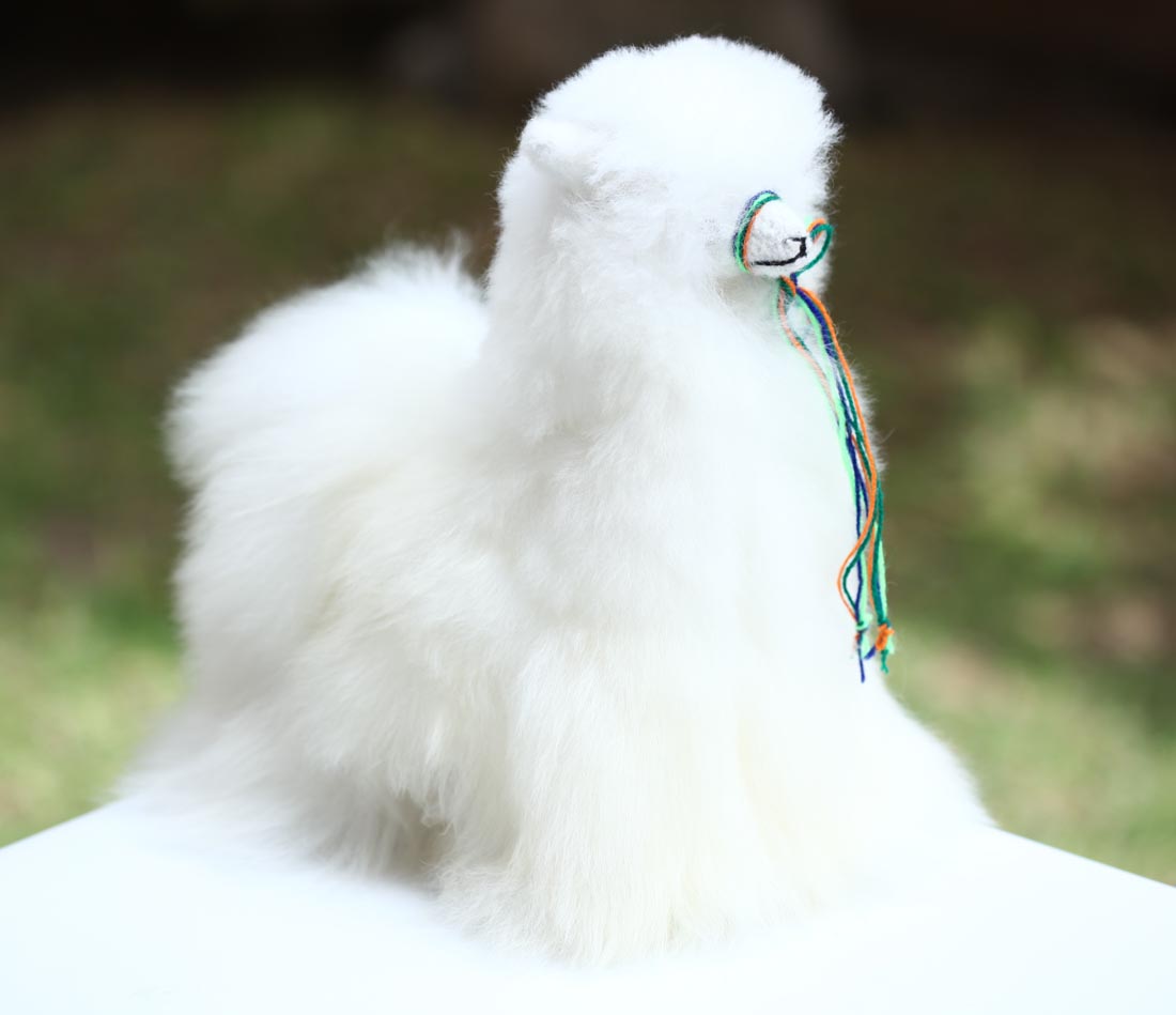 Made with 100% baby alpaca this plush animal is ultra soft, fluffy and hypoallergenic.