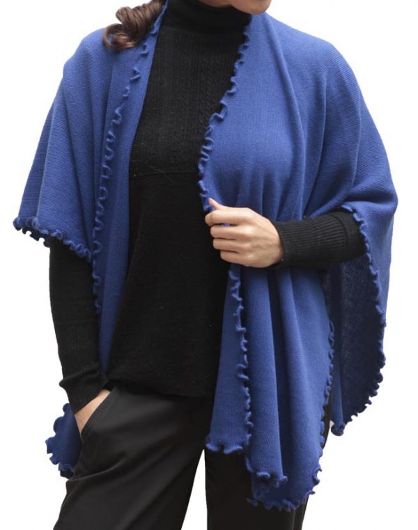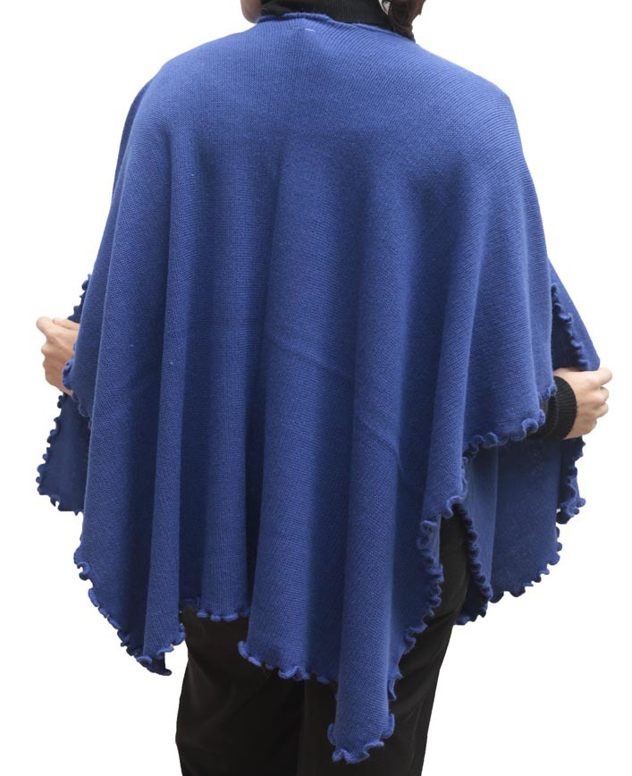 Women’s Knitted Baby Wool Ruana Cape Wrap blue
