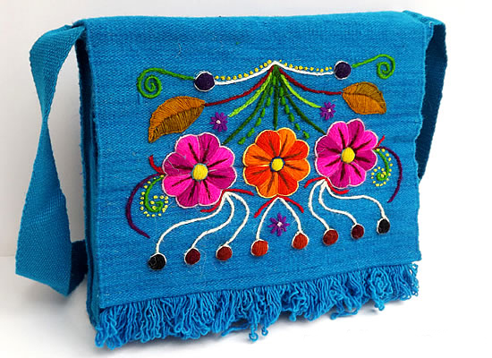 The florid fields of Tarma inspire the mesmerizing design of this shoulder bag. It is stylized after the mail bags used by Inca chasquis (messengers). Other than post, they would also carry coca leaves to chew on their voyages. This wool bag is woven on a pedal loom and embroidered by hand in legendary Ayacucho style. Fully lined, it has two practical pockets.